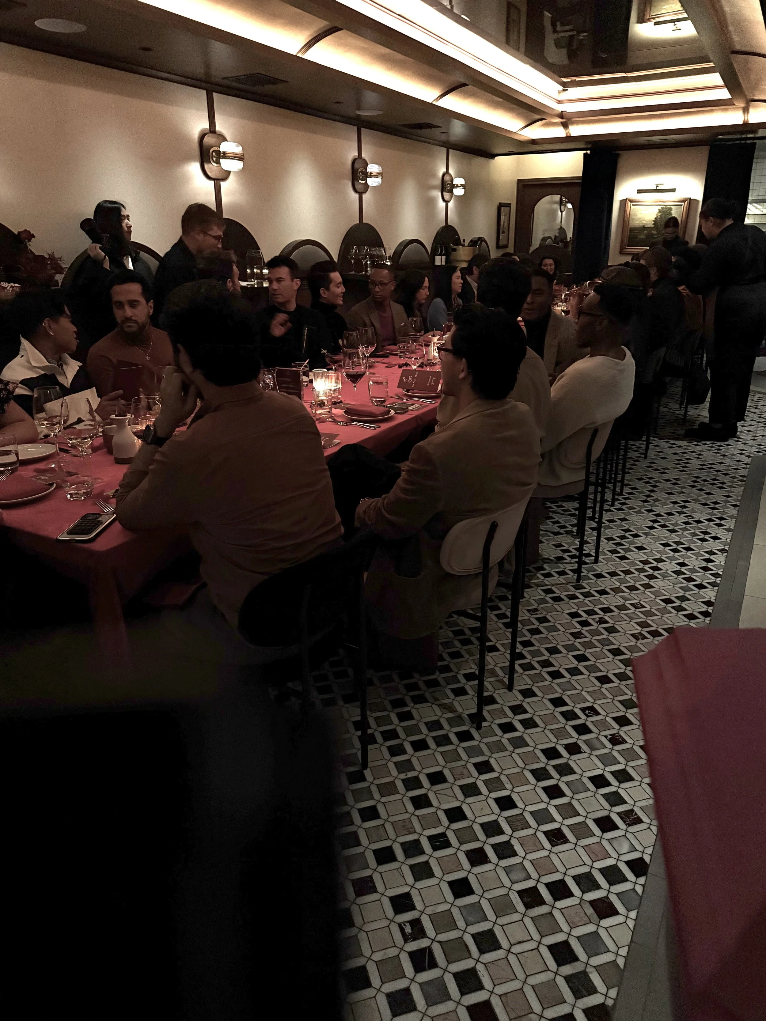 L’Artusi was dimly lit, candles on a long center table, deep curtains lining the walls. About twenty guests, dressed well, music filling the room without drowning it. Industry friends gathering to celebrate Four Roses Bourbon and each other. The kind of dinner where everyone already felt glad to be there before the first course arrived.